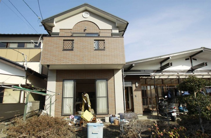 Estremecedora imagen de una víctima en las escaleras de su casa en Sendai.