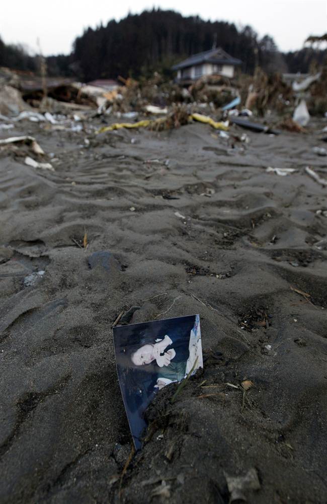 Fotografía familiar en mitad del desastre ocurrido en Rikuzentakata.