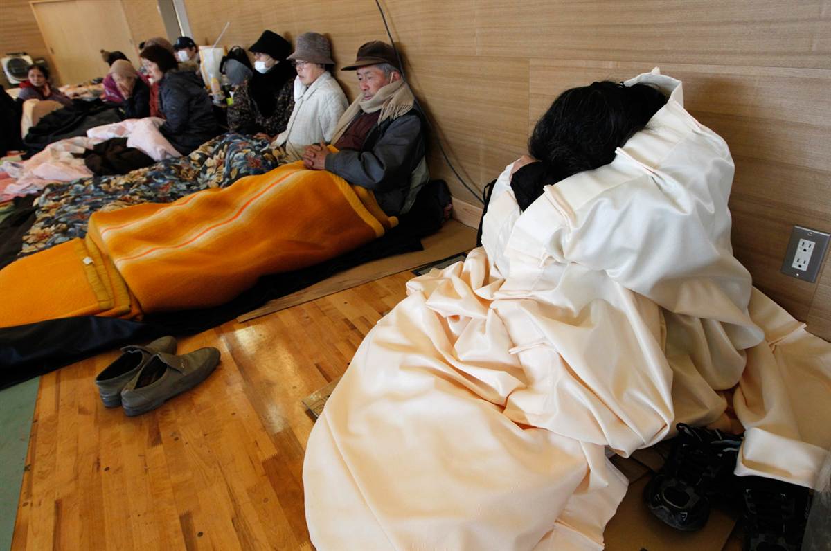 Estas personas fueron trasladadas desde un hospital cercano al área de evacuación de la Central Nuclear de Fukushima, hasta un refugio en Koriyama.