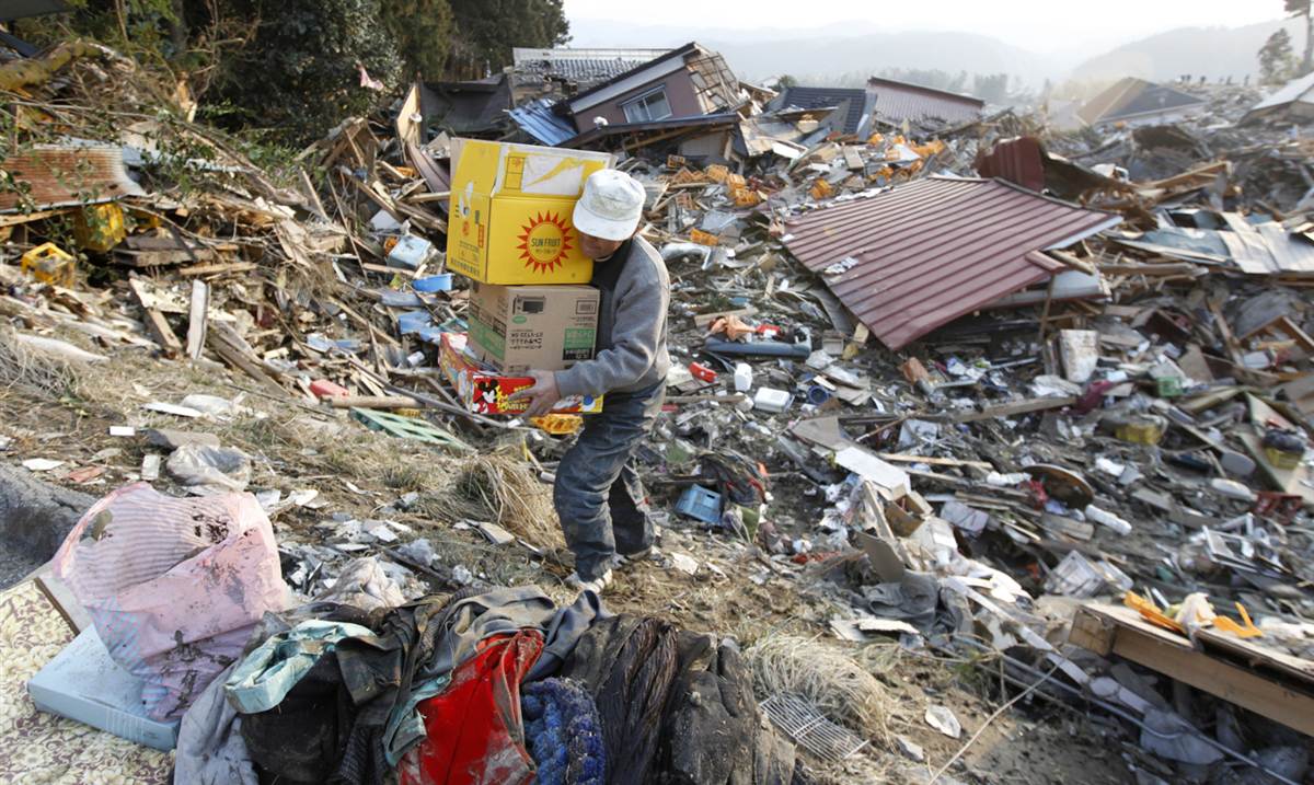 Salvando las posesiones de entre los escombros en Rikuzentakata.
