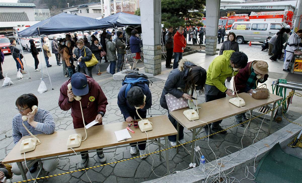 En Ofunato se permitió a la gente usar teléfonos de emergencia.