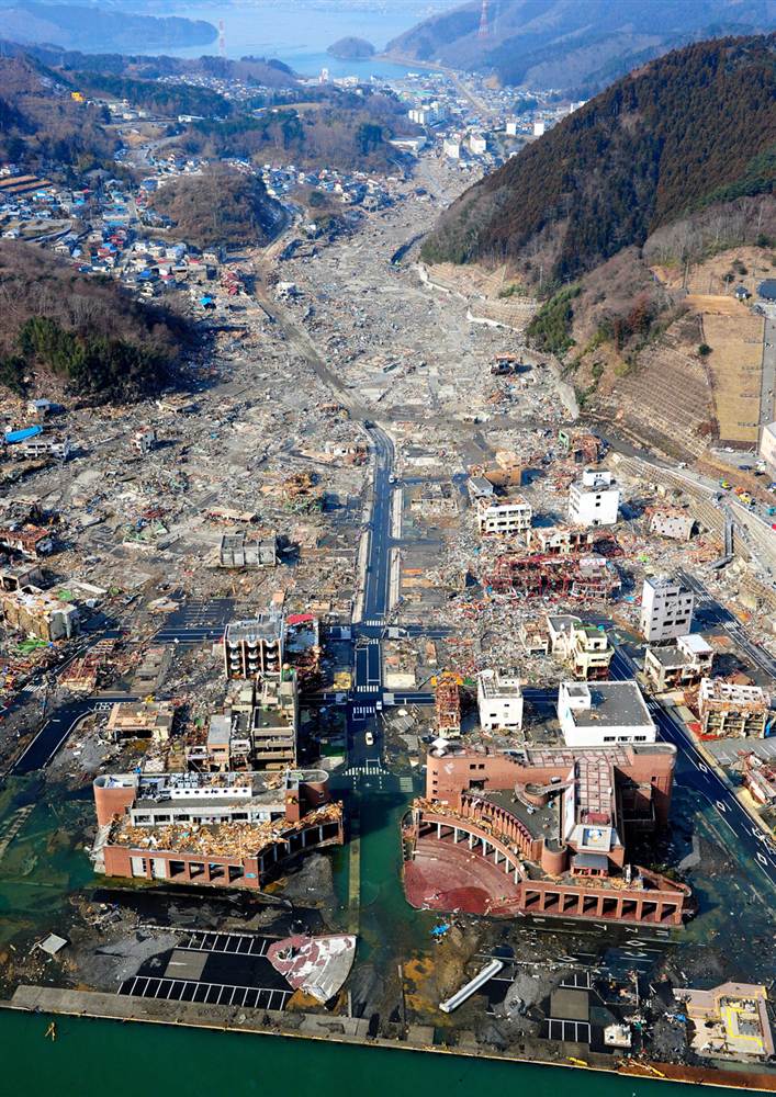 Vista aérea de la devastación causada en la ciudad de Onagawa.