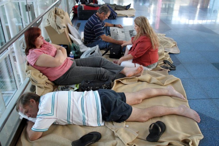 El australiano John Wraight duerme junto a su mujer Susan Biggar en el aeropuerto internacional de Haneda, a las afueras de Tokio. Ambos se encontraban en el mercado de Tsukiji cuando les sorprendió el terremoto de escala 9.0.
