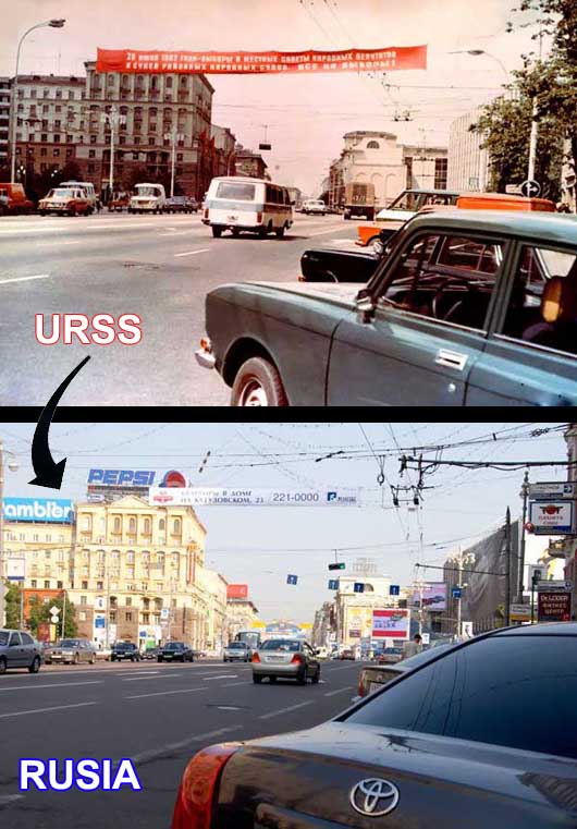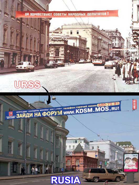 Esta parte es muy curiosa, con imágenes de los mismos emplazamientos antes, en la época del comunismo, y ahora, con un capitalismo floreciente.