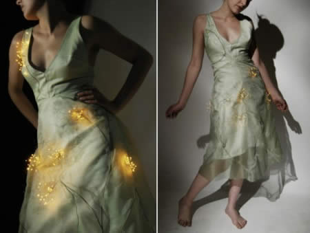 El vestido ecológico contribuye a la necesidad de ser más conscientes de los problemas medioambientales, a través de una representación estética de los datos del entorno. Los diferentes patrones de luz incrustados en las prendas, actúan como avisos de la polución del ambiente.