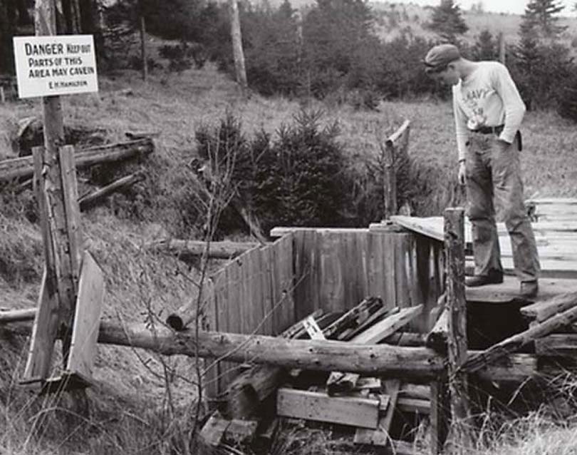 «Money Pit», el pozo del dinero: En la imagen de abajo, el pozo alrededor del cual, durante doscientos años, se han sucedido decenas de grupos de buscadores. Se cree que la entrada descubierta por McGinnis no es esta, sino otra que hay en las cercanías.
