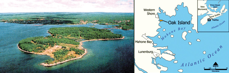 La isla de Oak (literalmente, «la isla del roble») es una pequeña isla situada en la costa este de Canadá, que cuenta con unas dimensiones de 1600 metros por 800 metros de largo. Todo comenzó en 1795, cuando al joven Daniel McGinnis, que paseaba tranquilamente, le llamó poderosamente la atención una hondonada en el terreno que había junto a un viejo roble, en cuyas ramas asomaba una especie de polea, parecida a las usadas en los barcos.