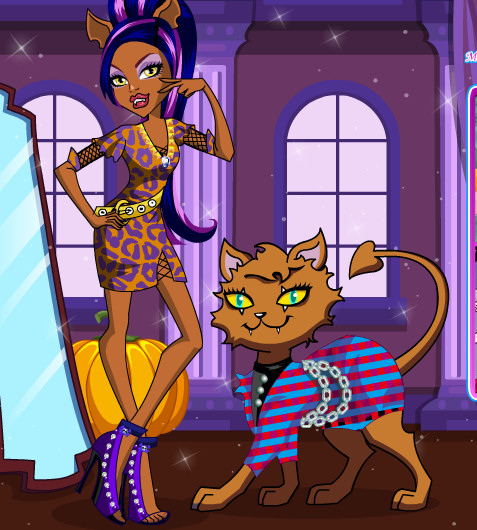 Las mascota de las Monster High esta un poco sucia y hay que ducharla para que este guapa para pasearla. Una vez que esta preparada y vestida con un traje chido, tendremos que intentar conjuntar a Clawdeen para que el gato y ella estén conjuntadas o que estén bien vestidas y con estilo. Seguro que tu tienes muchísimo estilo para vestirlos y ponerles guapos.