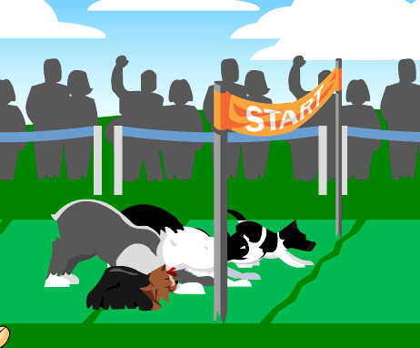 Enseña a los perros que mas te gustan, a saltar vallas y recoger el aro. Sera una competición con tiempo, si rebasas el limite de tiempo perderás y tendrás que empezar de nuevo. Podrás elegir la clase de perro que quieres entrenar y ponerle nombre, de esta forma cada vez que ganes, la gente te reconocerá. Seguro que este juego de perritos te gustara.