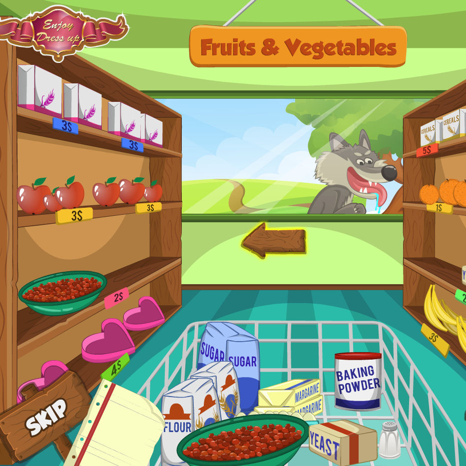 En el cuento de caperucita roja, la guapisima niña le lleva comida a su abuelita que la pobre esta un poco enferma. En este juego de ropa de caperucita roja, tendremos que ir primero a comprar los ingredientes para hacerle un pastel a la abuelita. Cuando tengamos todo, iremos a casa a cocinar el dulce, y una vez que lo tengamos, nos vestiremos adecuadamente para llevárselo. Por el camino hasta la casa de la abuelita cogeremos unas flores también para llevárselas.