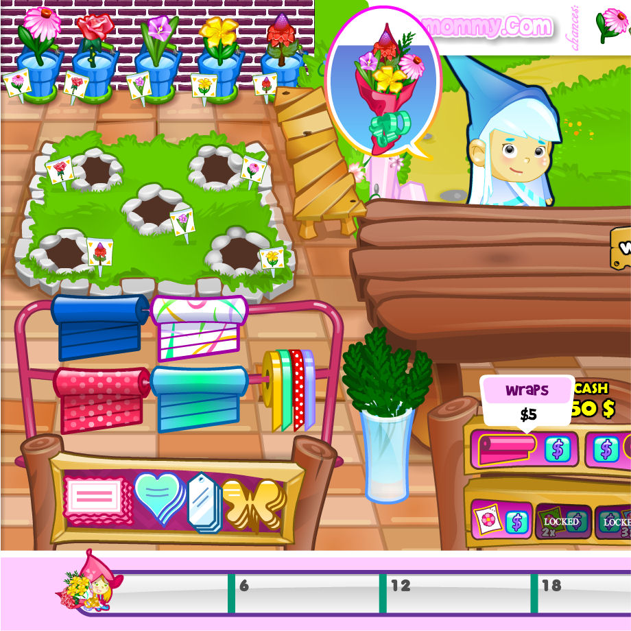 Si sembramos semillas de flores y las cuidamos, nos saldrán estupendas y maravillosas flores para hacer ramos bonitos. En este juego de floristería, tendremos que coger las semillas, plantarlas y esperar a que crezcan, cuando las tengamos tendremos que cortarlas, y después esperar a los clientes para vendérselas, ellos nos indicaran la clase de ramo que quieren, si no lo hacemos bien, se enfadaran y se marcharan a otra floristería.
