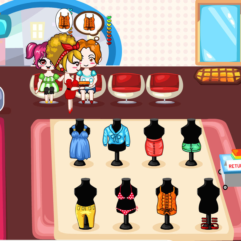 En todas las tiendas de ropa siempre podemos encontrar alguna prenda de vestir que nos llama la atención, o que nos guste mucho, pero si la dependienta esta molestando, normalmente salimos corriendo. En este juego de tiendas de moda, tendremos que ser una de esas dependientas que tienen que vender la ropa, tendremos que atender muy bien a la clienta, y si no lo hacemos rápido y bien se marchara a la competencia.