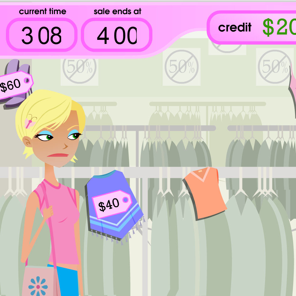 Cuando llegan las rebajas a las tiendas, la gente suele comprar impulsivamente aunque no le haga falta, solo por ver que el precio es mas bajo, la gente le encanta comprar. En este juego de tiendas en rebajas, intentaremos no perder la cabeza, he intentaremos comprar lo que verdaderamente sea necesario, y tendremos muy encuenta los precios que estén mas bajo, de esta forma podremos ahorrar un poco de dinero. Ten cuidado con el tiempo que se termina, y te puede dejar a medias de comprar.