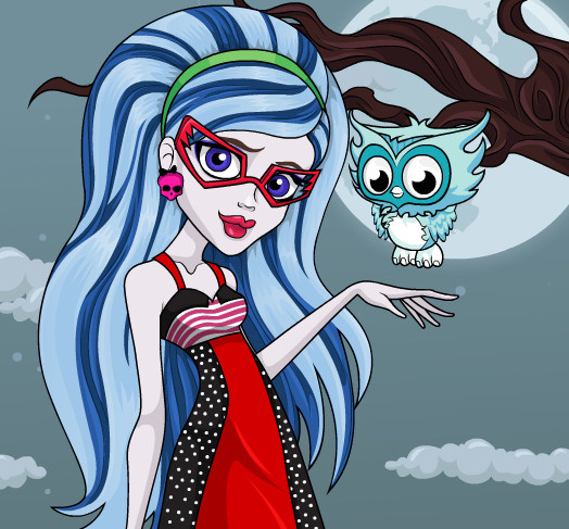 ¡Tu personaje preferido de Monster High ya tiene juegos! En esta ocasión podremos escoger los peinados para Ghoulia como si fuésemos su peluquera y luego podremos cambiar el maquillaje con los tonos de base para la piel, así como el color de ojos con unas lentillas adecuadas. También podremos darle un toque de estilismo escogiendo la ropa y vestidos que nos gusten, así como los accesorios: gafas, el buho de mascota, pulseras o pendientes.