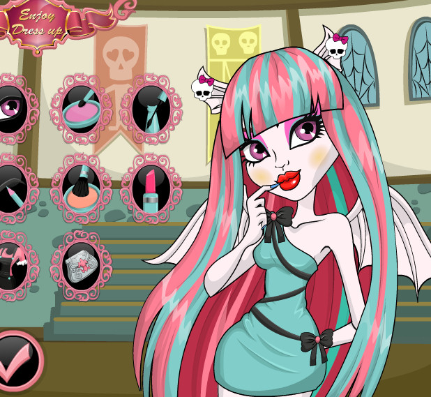 Luego pasaremos a la sección de maquillaje, donde tendrás base de maquillaje, sombra de ojos, rimmel, lentillas, delineador, lapiz, perfilador, pintalabios o pintauñas. También le podremos cambiar el estilo de peinado con varias pelucas y hasta vestir con varios trajes y ropa, así como complementos diversos: guantes, pendientes, bolsos, diademas, collares, pulseras o bolsos.