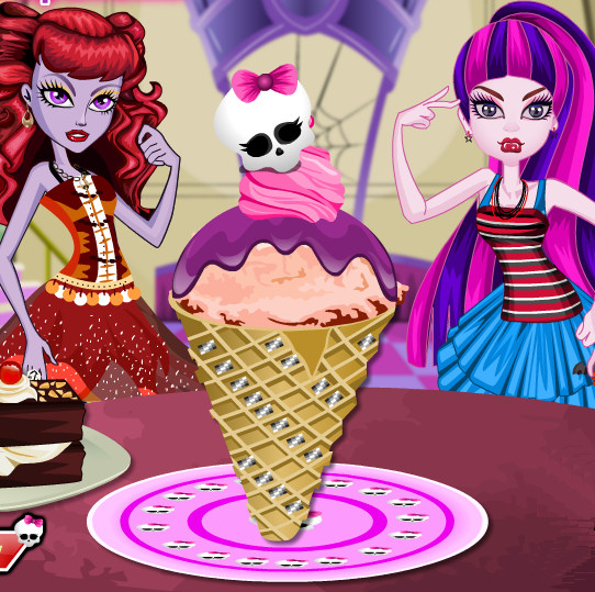 Ha llegado el turno de ponernos el delantal para cocinar, y esta vez te tocará hacer helados que tendrás que decorar. Elige la base, el sabor del helado y pon las diferentes coberturas, natas y siropes para cubrir el helado, terminando con algún elemento de decoración para rematar tu obra maestra. También podrás acompañar el helado con otro elemento de repostería. Si consigues hacer un buen helado, Operetta y Draculaura se pondrán muy contentas de poder comerse un rico postre.