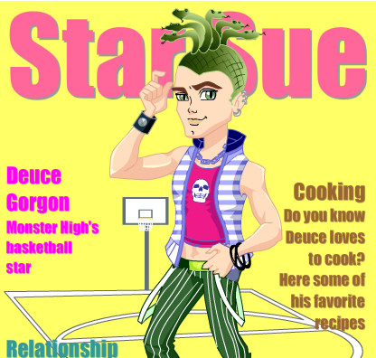 Deuce es hijo de Medusa, el ser mitológico que convierte en piedra todo lo que ve con su mirada. No te quedes de piedra y ayuda a Deuce a vestirse adecuadamente para que pueda ser novio de Cleo tras haberlo sido de Clawd Wolf. Podrás probarle trajes, pantalones, camisetas, piercings, calcetines, zapatillas, y hasta cambiarle el peinado.
