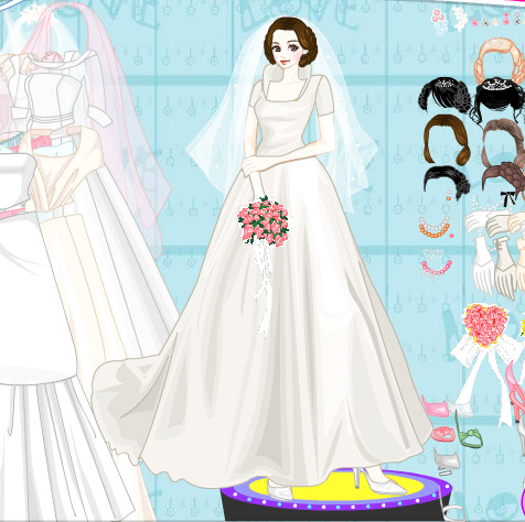 Así podrás elegir el estilo y diseñar las distintas prendas a tu gusto. Para terminar, podrás vestir a la novia con zapatos, guantes, joyas, ramos de flores, y peinar su cabello escogiendo un estilo de peinado. Así la novia podrá disfrutar de un día feliz en su boda.