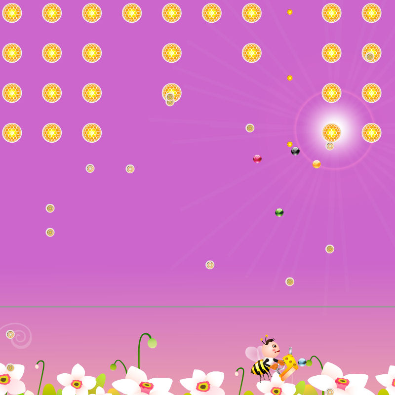 Si estáis familiarizados con el juego Space Invaders, seguro que este juego con una abeja que dispara, os recuerda a ese clásico de juegos de tiros. Encarnaremos a una abeja que tiene que recoger miel, y para ello tendrá que disparar a los círculos de miel usando su recogedor de miel como arma. Pero claro, la cosa no está tan fácil, ya que las bolas de miel también nos lanzarán disparos que tendremos que evitar si no queremos que se nos agoten las vidas. Por lo tanto, mientras esquivamos los proyectiles que nos lanzan, tendremos nosotros también que disparar. En fases más avanzadas, la dificultad crecerá, y la pantalla será todo un campo de guerra con obstáculos y enemigos. Un juego de disparos sencillo, pero a la vez muy adictivo.