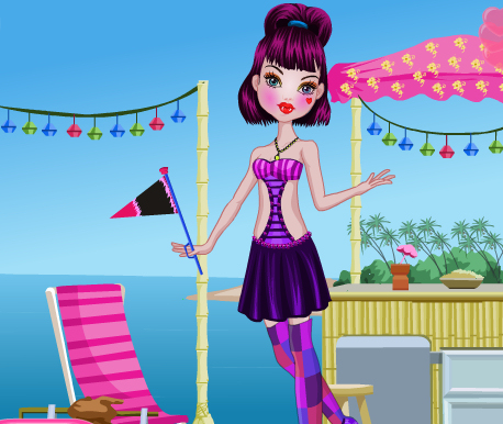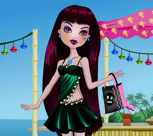 Ya estamos en vacaciones y con el sol y la playa cerca, llega los juegos de vestir a Draculaura con su ropa playera. Este año tendrá que ponerse muy guapa si quiere conseguir un novio de verano, ya que las Monster High están preparando una fiesta de verano y se han comprado una ropa súper chida. Esperemos que Draculaura sepa elegir su vestuario para estar también súper chida.