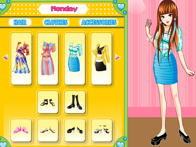 En juegos de moda fashion, hoy traemos un juego que te encantara, solo tendrás que seguir las pocas instrucciones que tiene, ya que tendrás que vestir a tus muñecas de distintas forma, según te aconsejen, ya que cada día de la semana tendrá que tener un aspecto. También puedes variar el tipo de ropa que te gustaría que llevasen, ya sea ropa deportiva, ropa de vestir, etc.