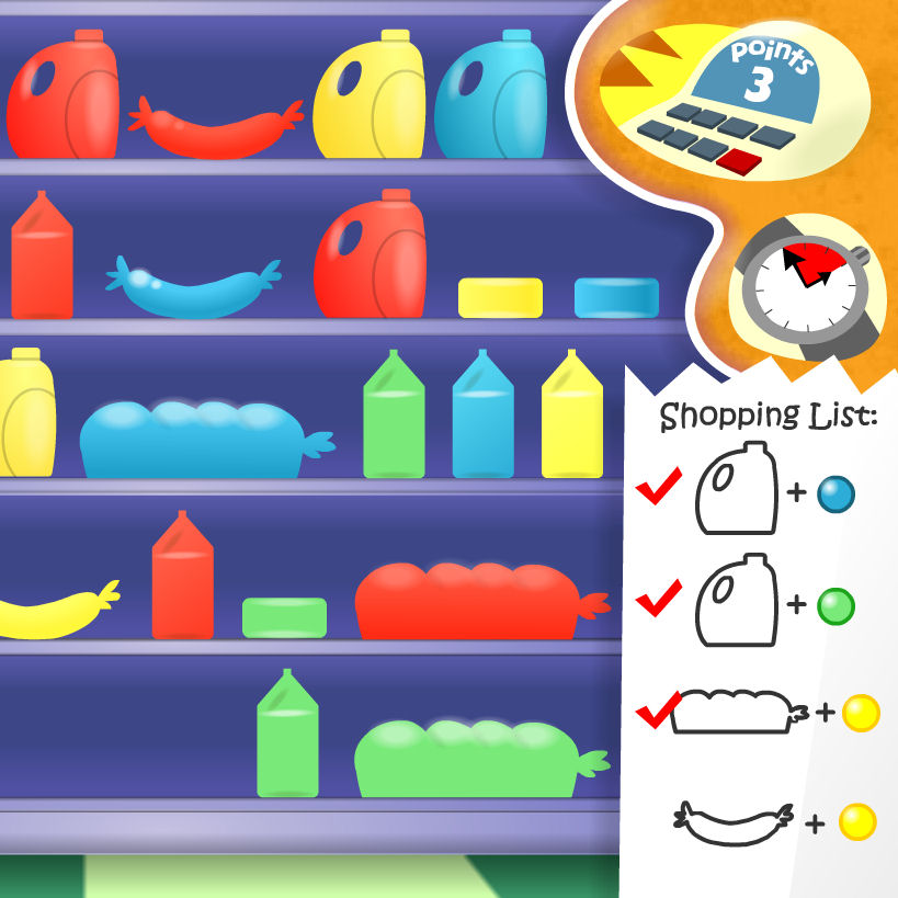 Para poder hacer una buena compra de comida, lo mejor es tener una lista para poder hacerla mucho mejor. En este juego de habilidad, tendremos que intentar encontrar unos productos de una lista, tendremos que fijarnos muy bien en el color y la forma que tienen. Uno de los problemos es que tenemos un tiempo para poder encontrar todos los articulos, si no lo conseguimos no tendremos bonificacion en el juego.