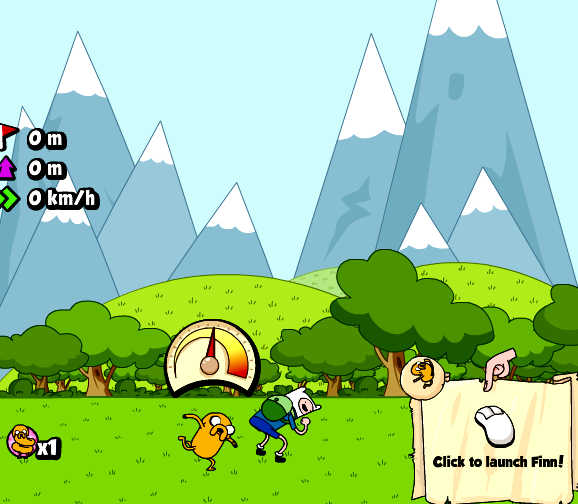 ¡Parece que Finn y Jake tienen de nuevo problemas! El Rey de Hielo ha raptado a la princesa y se la ha llevado a su castillo en la Tierra Helada, por lo que nuestros amigos de Hora de Aventuras tendrán que rescatarla. ¿Y cómo podrán llegar hasta la morada del maligno Rey de Hielo? Pues muy fácil, Finn podrá volar gracias a las patadas que le vaya dando el perro Jake para lanzarle a distancia y llegar lo más lejos posible. Pero como muchas veces será insuficiente, podremos ayudarnos de varios extras para tener más potencia e ir mejorando el salto.