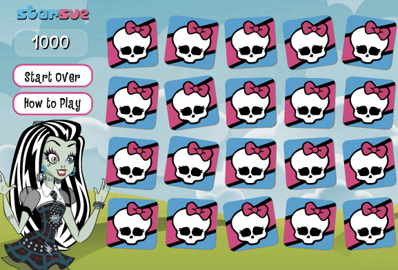 Juego de memoria para pasarlo genial con los personajes de Monster High. Forma parejas con las cartas de Frankie Stien, Draculaura, Wolf Clawdeen, Cleo de Nilo, Blue Lagoona, Ghoulia o Gorgon Deuce y no te equivoques. Recuerda en qué lugar está cada personaje para formar la pareja cuando aparezca la segunda carta con ese mismo personaje. Monster High es una franquicia creada por Mattel en 2010 e incluye muñecas, vídeos, libros y muchos complementos más. Es monstruosamente guay, como dirían mis monstruitos, y estimula la individualidad de los jóvenes.