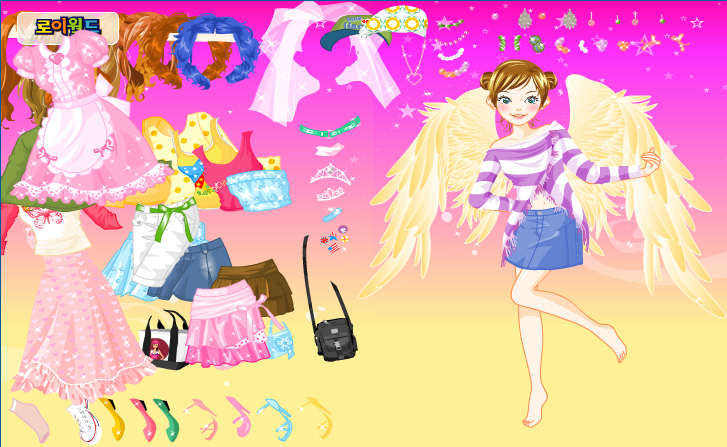 Otro divertido juego desde Yahoo Korea para vestir a nuestros personajes, en este caso a un ángel caído del cielo. Para que vuele muy alto con sus alas, habrá que poner guapa a nuestra hada. Podemos ponerle minifaldas, vestidos largos, tules, accesorios y peinados muy bonitos y de diferentes colores.