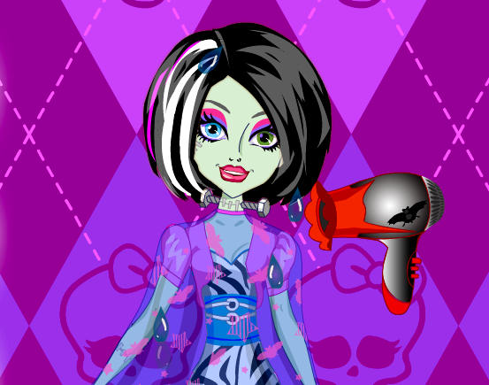 Hoy es el gran día de Frankie Stein, le quieren entregar un premio a la Monster High con mas juegos de vestir y maquillar que hay. Para la ocasión Frankie Stein esta dispuesta a cambiar su estilo, y quiere que le hagan un peinado que se salga de lo normal, ella siempre intenta ir un poco clásica y ahora quiere sorprender a todos. Con un buen tinte de pelo y un corte que le hagamos, seguro que conseguimos que su look sea mas atrevido y mucho mas llamativo que antes.