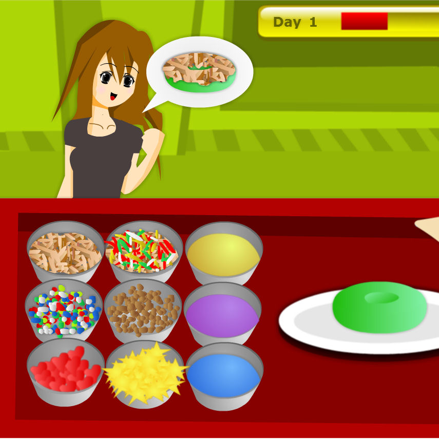 En este estupendo juego de dependienta de la tienda de donuts, tendrás que tener encuenta ser rápida preparando el pedido, ya que el tiempo pasa muy deprisa y si no consigues el objetivo no pasaras a la siguiente fase. Cuando llegue el cliente, sitúa el ratón encima de el y aprieta el botón izquierdo, el te dirá como quiere el donut. Seguro que con este juego de dependienta, pasaras un rato muy entretenido.
