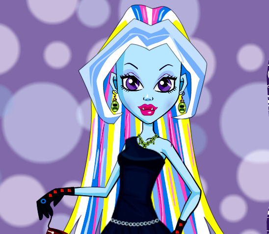 Hoy en juegos de Monster High, te traemos a la Monster mas chida de todas, Abbey. Que pretende ir a una fiesta de fin de curso en el colegio, en este momento esta decidiendo que peinado se hará, y luego mas tarde ira a la tienda de la ciudad para elegir el vestido que le quede más chido. Posiblemente esta noche sea la mas guapa de todo el baile.