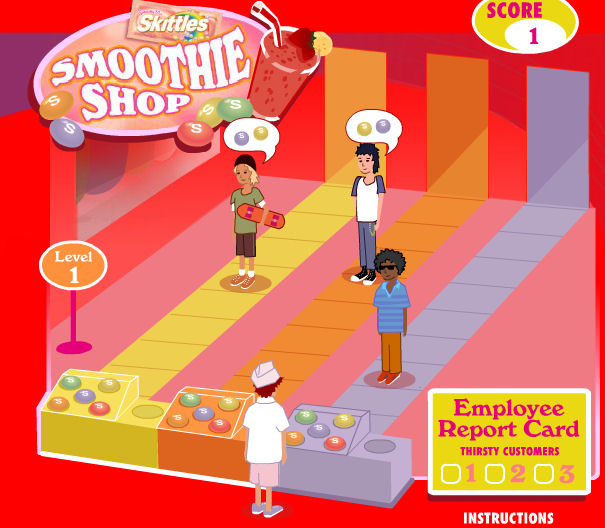En este juego tendremos que servir batidos y más batidos a los clientes que vengan a comprarlos. Es un juego en el que habrá que darse prisa para ir preparando los batidos de los sabores que quiera cada cliente. Posiciona al dependiente en el carril adecuado y cuando veas lo que pide cada persona, pulsa los botones del mismo color que el sabor que pidan. ¡A ganar mucho dinero!