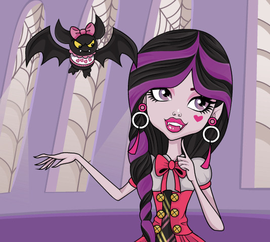 En este fabuloso juego de vestidos elige las prendas y peinado que más te guste para poder cambiar el look de Draculaura. También podrás realizar una sesión de peluquería cambiando el peinado y maquillar su tono de piel con maquillaje base y sus ojos cambiando el color de las lentillas. Estilo: Le encanta salpicar sus conjuntos negros con toques rosa fucsia y suele llevar un paraguas muy fashion porque de vez en cuando le gusta pasear bajo el sol, así que escoge los complementos extra adecuadamente.