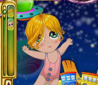 A este bebé le encantaría ser astronauta y visitar el espacio exterior mientras vuela entre estrellas y planetas. En el juego podrás ayudarle a ponerse guapo escogiendo entre la ropa de su armario para darle un estilismo que te guste. También puedes elegir el peinado del bebé, haciendo click en una ruleta que verás si pones el ratón sobre su cabeza. Tras elegir la ropa, podrás también ponerle un casco y un traje espacial que sea lindo con sus guantes y botas.