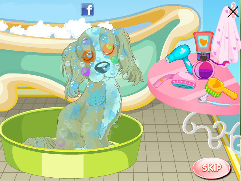 Hoy es el día del baño de la mascota de Blondie Lockes, esta bastante sucia y como hoy irán de paseo los dos, habrá que lavarlo. Cuando lo tenga lavado, peinado y secado, ella se vestirá con un traje muy chido y se pondrá los complementos mas chidos que tenga y unos zapatos a juego para salir de paseo, y lucirse ella y su mascota por el parque.