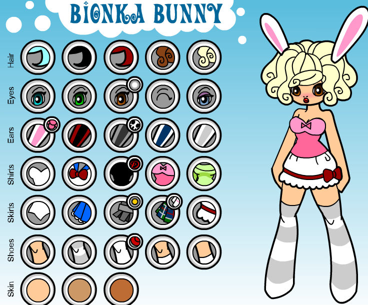 Si lo que te gustaría ser, es una chica conejo, aquí puedes vestir y peinar a una conejita de Bionka muy guapa.