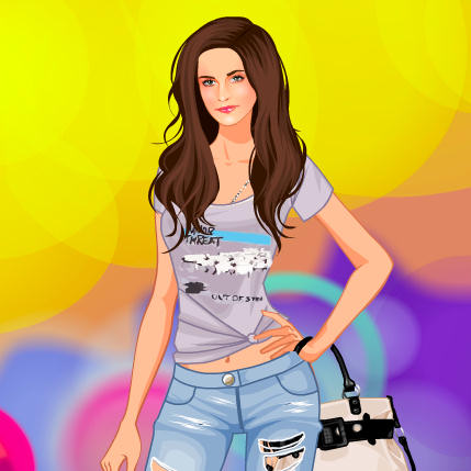 Otro juego de moda para vestir a Kristen Stewart, la guapa actriz que se hizo famosa como Bella Swan en las películas de la saga Crepúsculo. Para comenzar el juego, tendrás que hacer click en las letras que verás que pone Kristen Stewart, y pasarás a poder vestir a la chica. Al principio verás varios peinados, joyas, bolsos, zapatillas y zapatos, que podrás adaptar a Kristen. Si te fijas, en la parte superior verás unos corazones, con los que podrás acceder a otras partes del armario, como la que tiene faldas y vestidos o la de pantalones.