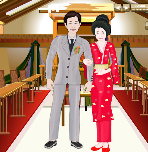 Moda y ropa para esta pareja de enamorados de Japón. Escoge entre toda la ropa del armario tanto para el novio, como los vestidos para la novia, y no olvides arreglarlos con zapatos y escoger un buen peinado para esta boda. Verás que divertido es vestir a esta pareja de novios provenientes del país del Sol Naciente, y de paso comprobarás sus curiosas costumbres y estilos en lo que respecta a trajes de boda.
