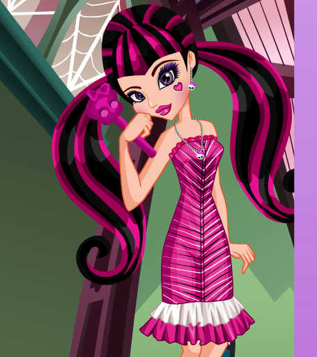 Dracualaura, la de juegos de Monster High, tiene una fiesta esta noche y quiere ser la mas guapa del baile. Le gustaría que alguien que tenga mucho gusto la maquillara y la vistiera con un vestido y unos complementos elegantes, para que en la fiesta resaltara entre todas las Monster high que van a ir. Seguro que podremos intentar ponerla guapísima.