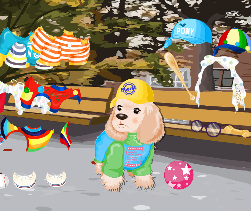 Aquí tienes un bonito juego donde podremos vestir al perrito de raza Cocker Spaniel con ropas muy coloridas, camisetas y faldas muy modernas. También le podremos poner gorras y jugar con él al béisbol y la pelota. Ah, y también podrás jugar con el hueso. Ya verás como el perrito te agradece que le pongas ropa y trajecitos tan bonitos con los que podrás dar sus paseos por el parque cuando le saque su amo.