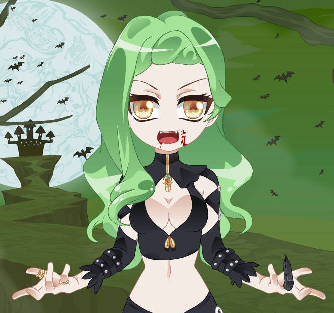 Hoy esta chica vampiro quiere chuparte la sangre, pero está dispuesta a hacer un trato para perdonarte la vida, y te dejará en paz si le ayudas con su estilismo. Podrás vestir, maquillar y peinar a la chica vampiro eligiendo los elementos del menú. Es un juego muy completo, pues tienes desde gargantillas y collares, anillos, gafas y anteojos, hasta ropa de vampiresa y peinados terroríficos. Hasta tienes un botón del menú inferior para cargar una configuración aleatoria de todo el maquillaje, peinado y ropa.