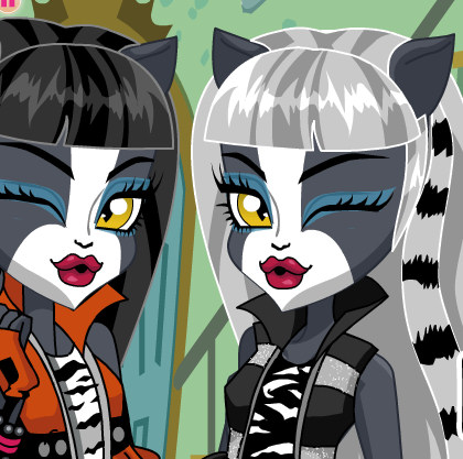 En este juego podrás vestir a estas dos gatitas de Monster High, llamadas Purrsephone y Meowlody. La verdad es que las dos son muy muy curiosas y no dudan en participar en los planes de los demás sin pensar en las consecuencias, por eso se meten en algún que otro lío. Como actividad preferida, les gusta mucho echarse una siesta, pero cuando no la hacen, disfrutan también haciendo gimnasia. La comida que más les gusta es el helado… ¡quién se resiste a un buen helado!