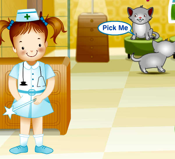 En este juego de veterinaria podremos ser una guapa niña que es veterinaria y se dedica a cuidar a los perros y gatos que acuden a su consulta. Muchos de ellos tienen simplemente cosas leves y que se pueden curar fácilmente con unos cuidados sencillos. Y aquí es donde nosotros entramos en escena, ayudando a la chica a despachar a las mascotas que vayan desfilando. Por orden de llegada, iremos sentando en la silla a cada animal y luego veremos qué clase de cuidado requiere, si unos mimos de caricias de mano, unos besos, algo de comida o un poco de juego con una pelota. Simplemente tendrás que hacer clic en el perro o gato y luego la silla para sentarlo, al igual que los tratamientos, en los que haremos clic en el corazón, labios, pelota o galleta y luego en el animal, para darle ese cuidado. A buen seguro que disfrutas mucho con este juego de cuidar animales.