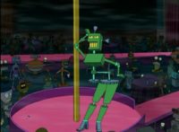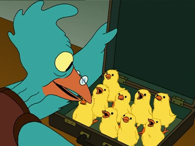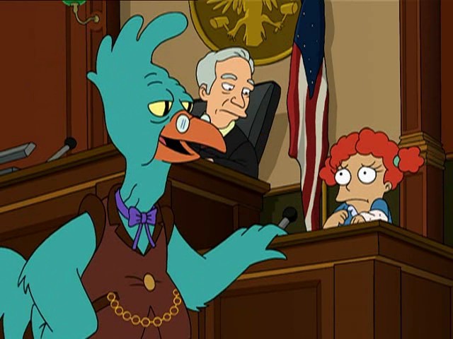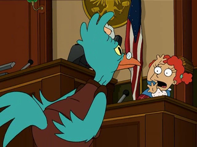 Me hace mucha gracia cuando el pollo asusta a la niña que está en el estrado y se disculpa diciendo: “Perdoname, creí que eras maiz”, aparte de las inexistentes pruebas que presenta para acusar aBender, obligando simplemente a la niña a señalarlo.