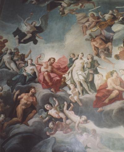 Juno (Hera para los griegos), hermana y esposa de Júpiter, era la reina de los dioses, la señora del cielo y la tierra y la protectora de los reinos y los imperios. Su presencia no faltaba jamás en los nacimientos y los desposorios, otorgando especial protección a las esposas virtuosas. Cuando presidía el nacimiento de los niños, tomaba el nombre de Lucina, Juno-Lucina o Ilitía.