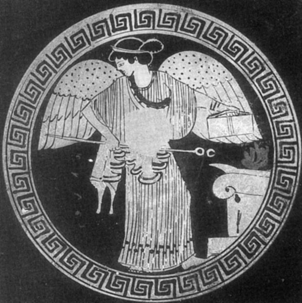 Iris, hija de Juno y mensajera de los dioses, transmitía sus mandatos a los diversos lugares de la tierra, a los mares y hasta a los infiernos, ejerciendo entre tanto, los oficios más penosos: asistía a las mujeres agonizantes y cortaba el hilo que mantenía unidas sus almas al cuerpo, cumpliendo de esta manera y en nombre de Juno, tan piadosa misión.