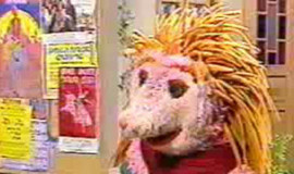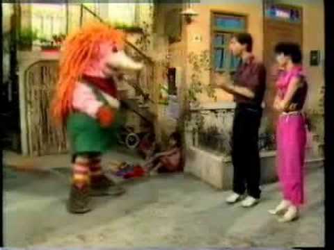 De Kipi no me gusta que llevaba ropa y zapatos. Creo que el nuestro, aunque estaba «desnudo», tenía un estilo mejor al menos en la parte de las patas. El Espinete israelí lo veo demasiado humano en esa parte. He bajado algunos vídeos para que os hagáis una idea de cómo es el programa. Si no me equivoco, son trozos de 1985 y 1986.