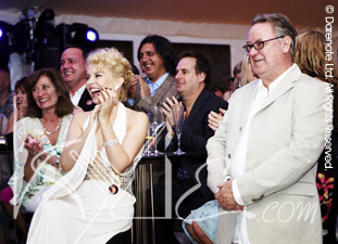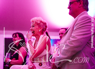 Fiesta del pasado 3 de agosto donde se celebraron los 20 años de carrera discográfica de Kylie Minogue. En las fotos, junto a su manager Terry Blamey. ¡Qué guapa está la jodia!