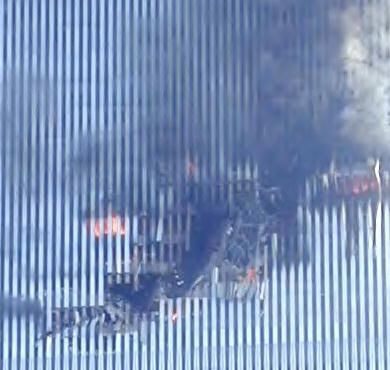lo extraño es que al parecer esta imagen fue trucada, ya que si fuese cierta estaria ardiendo en llamas, ya que estaba parada precisamente donde se estrello el Avion, la temperatura ahi en ese punto era insoportable..pero tambien hay una foto de ella misma cayendo del edificio (jumper)…es uno de los tantos misterios que se dieron ese dia.